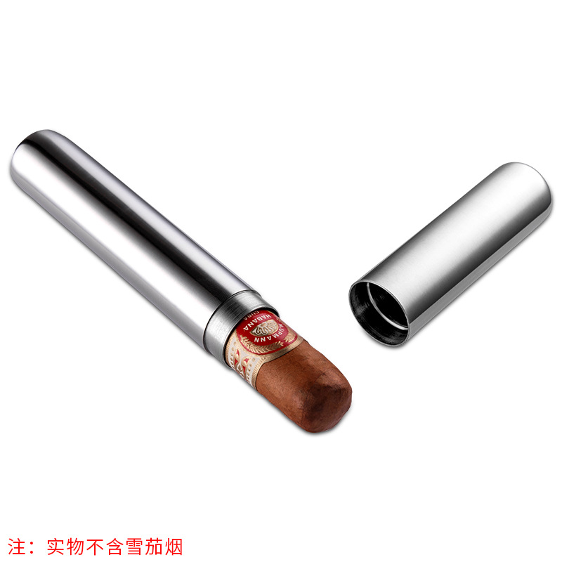 Classic Stainless Steel Single Cigar Tube Humidor Jar Case