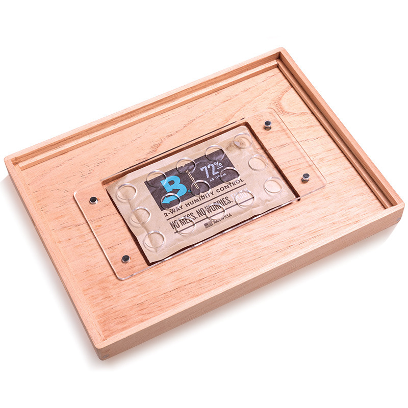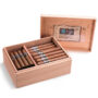 1. Introducing our exquisite Cigar Humidor Case, a perfect blend of elegance and functionality designed for the discerning cigar aficionado. This beautifully crafted cigar box features a stunning glass lid that not only showcases the rich, textured beauty of the cigar within but also allows for easy visibility and access. The humidor is meticulously constructed to maintain optimal humidity levels, ensuring that your cigars remain fresh and flavorful. The sleek design and premium materials make it an ideal addition to any collection, whether displayed on a coffee table or stored in a dedicated cigar room.