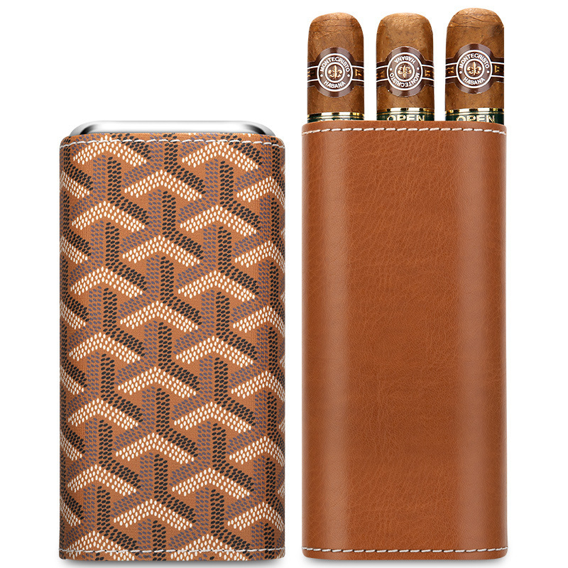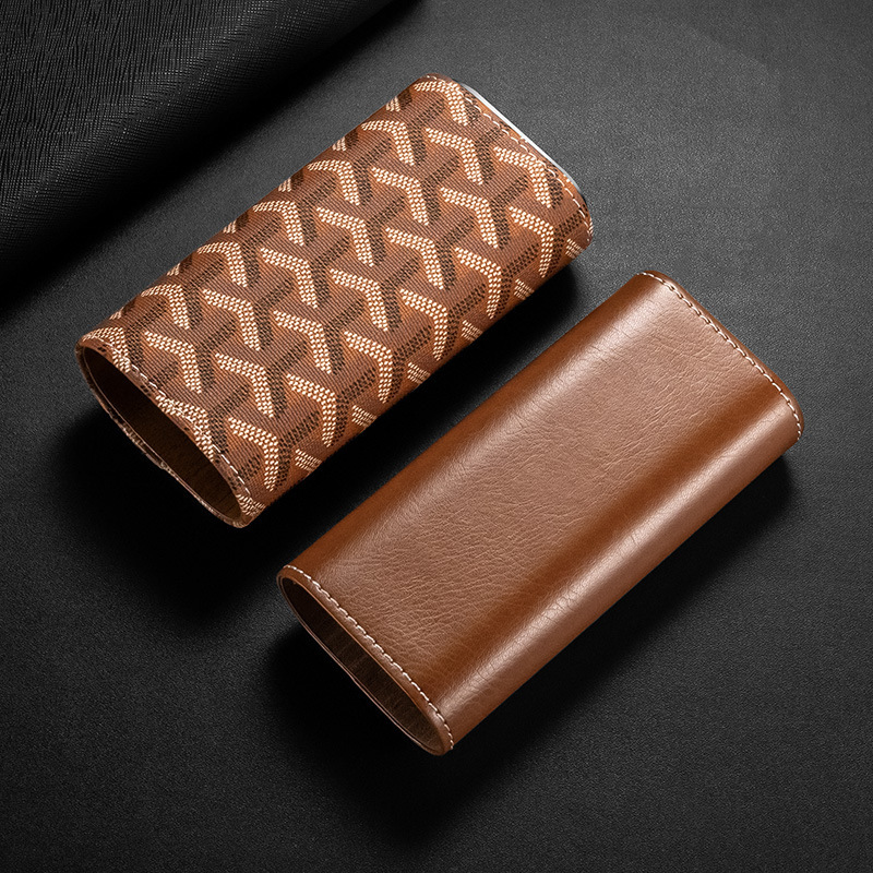 Portable Leather Stripe Cigar Box Case For 3 Cigars