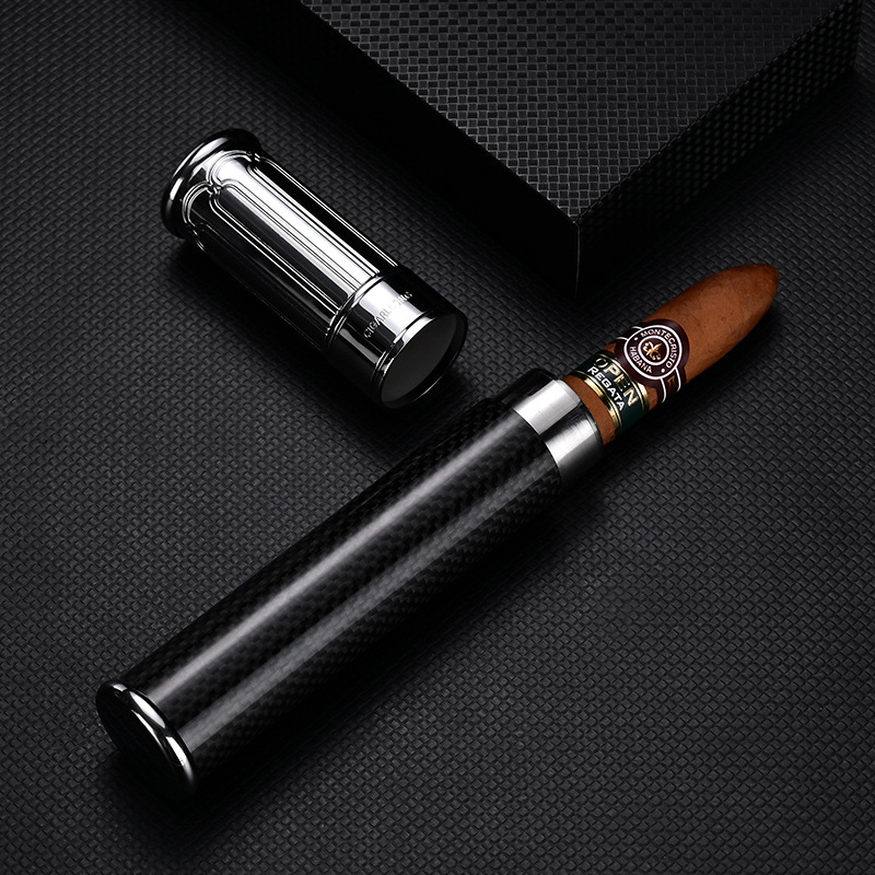 Portable Stainless Steel Single Cigar Tube Humidor Jar Case