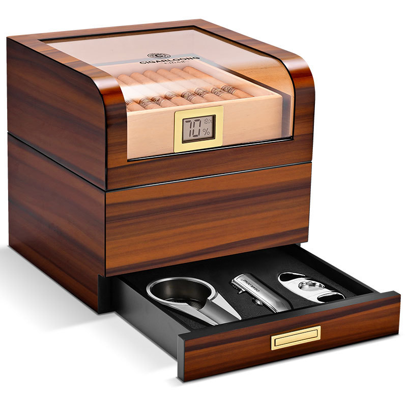 Premium Cigar Arc Glass Top Cabinet Humidor Box Case