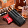 Travel Portable Leather Cigar Humidor Case For 3 Cigars