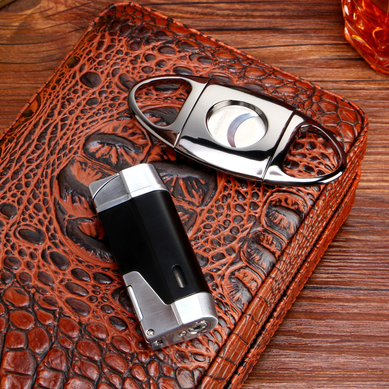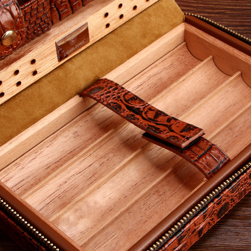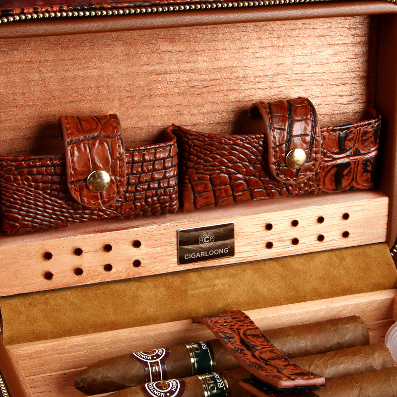 Vintage Crocodile Pattern Cigar Humidor Box Case