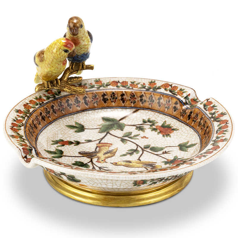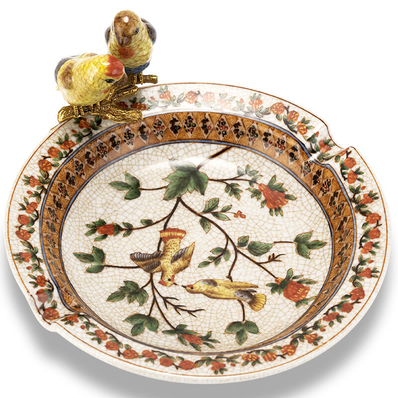 Vintage Luxury Ceramics Two Slot Painting Cigar Ashtray