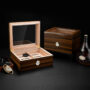 1. Introducing our exquisite Cigar Humidor Case, a perfect blend of elegance and functionality designed for the discerning cigar aficionado. This beautifully crafted cigar box features a stunning glass lid that not only showcases the rich, textured beauty of the cigar within but also allows for easy visibility and access. The humidor is meticulously constructed to maintain optimal humidity levels, ensuring that your cigars remain fresh and flavorful. The sleek design and premium materials make it an ideal addition to any collection, whether displayed on a coffee table or stored in a dedicated cigar room.
