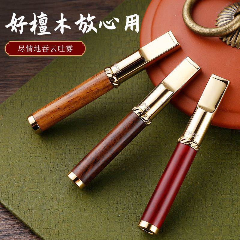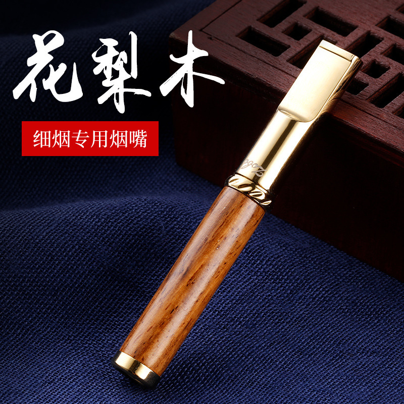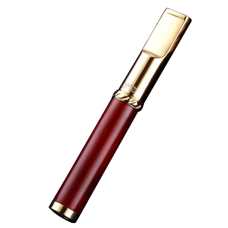 2. The cigarette filter holder is thoughtfully placed atop a beautifully crafted wooden box, which adds an element of rustic charm to the overall presentation. The box serves as a stylish storage solution, perfect for keeping your smoking accessories organized and easily accessible. Made from high-quality materials, both the pipe and the box are designed to withstand the test of time, making them a worthy addition to any smoking collection. Whether you are a seasoned smoker or a casual user, this gold and black pipe is an essential accessory that combines style and practicality, making it an ideal gift for yourself or a loved one.